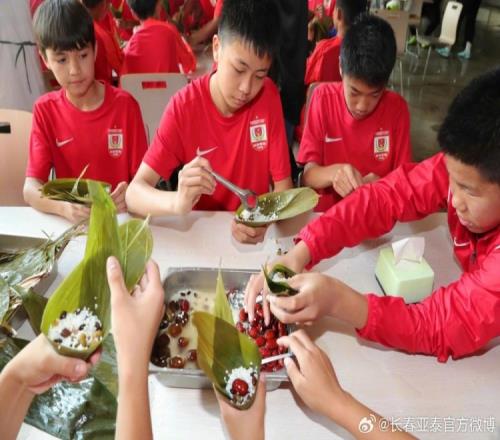 为弘扬中华优秀传统文化,增强亚泰青训球员凝聚力与社会责任感,每年“六一”,俱乐部都会举办丰富多彩的活动,让孩子们体会童年的快乐。2021年,亚泰青训组织4支梯队的小球员走进吉林省博物院、吉林省科学技术馆,以增加知识、开阔视野的方式庆祝儿童节。2022年,俱乐部首次在端午节开展包粽子体验活动。今年,俱乐部再次举行包粽子活动,希望他们不忘初心、增强中华传统文化学习,努力训练、快乐成长,追逐自己的足球梦想。